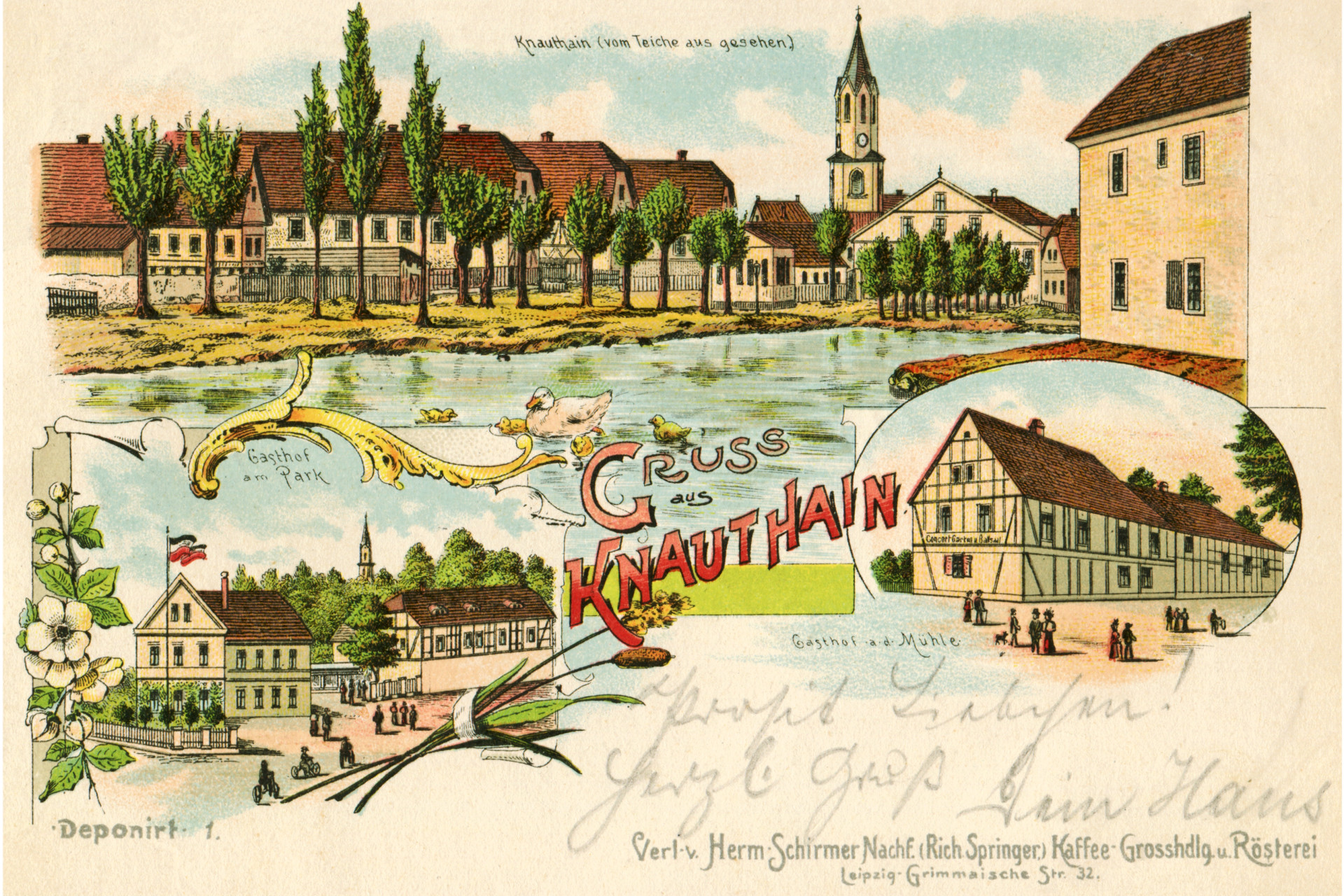 Petrus de Hagen (-hain) und das nach ihm herrschende Geschlecht der Knuthe (Knaut-) prägten mit ihrem Name, den Namen des Ortsteils Knauthain. Im Laufe der Zeit gab es immer wieder Wechsel von Herrschaftsfamilien, die sich ebenfalls mit ihrem Name „verewigt“ haben: diese waren z. B: Familie Pflug nach denen auch die Straße am Schloss benannt ist und Familie Dieskau – den Straßennamen kennen wir hier sicher alle. Die Familie Dieskau war es auch, die von 1700 bis 1705 das heutige Schloss mit dazugehörigen Schlosspark von David Schatz errichten ließ.